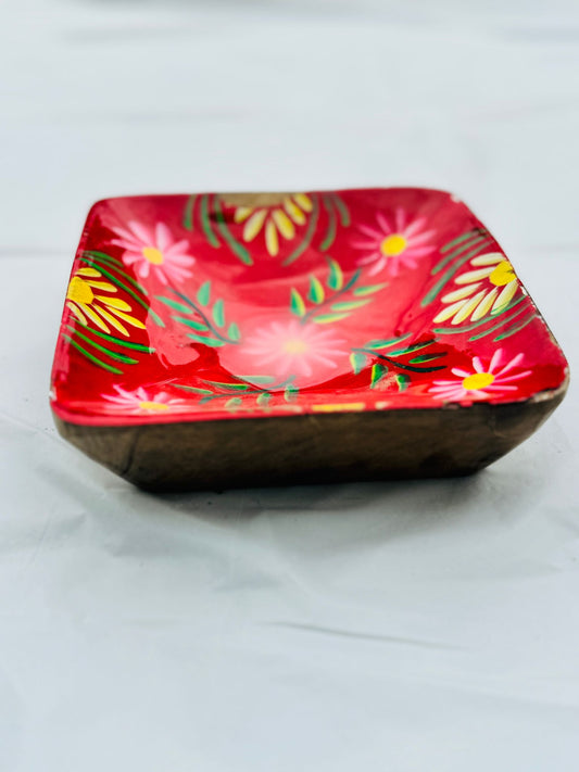 Hand-Painted Floral Square Tray